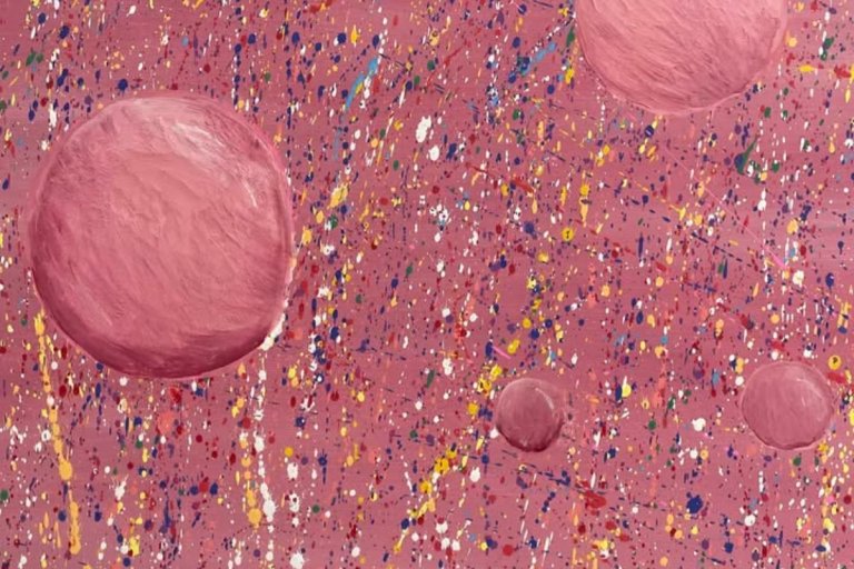 Á sýningunni „Flótti“ má sjá punkta verk unnin með akrýlpenna og málningu. Verkin endurspegla innra ferðalag — þörfina fyrir að draga sig í hlé frá áreiti nútímans og finna skjól í sköpuninni.