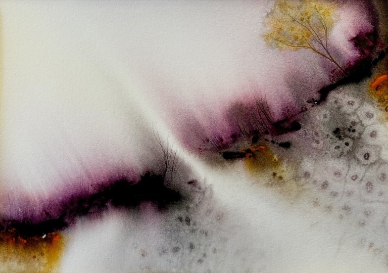 Sjónarhóll minn er hár og breiður – ég sé ekki bara heldur skynja ég, túlka og finn það sem fyrir augu ber. Þessi sýning er tilraun til að fanga þá upplifun á blaði með vatnslitum.