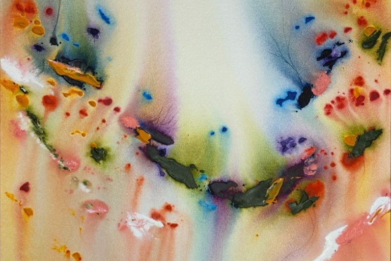 Gagnsær og viðkvæmur hentar vantsliturinn vel til að fanga þessi augnablik. Verkin bjóða áhorfandanum að hægja á sér og vera til staðar.