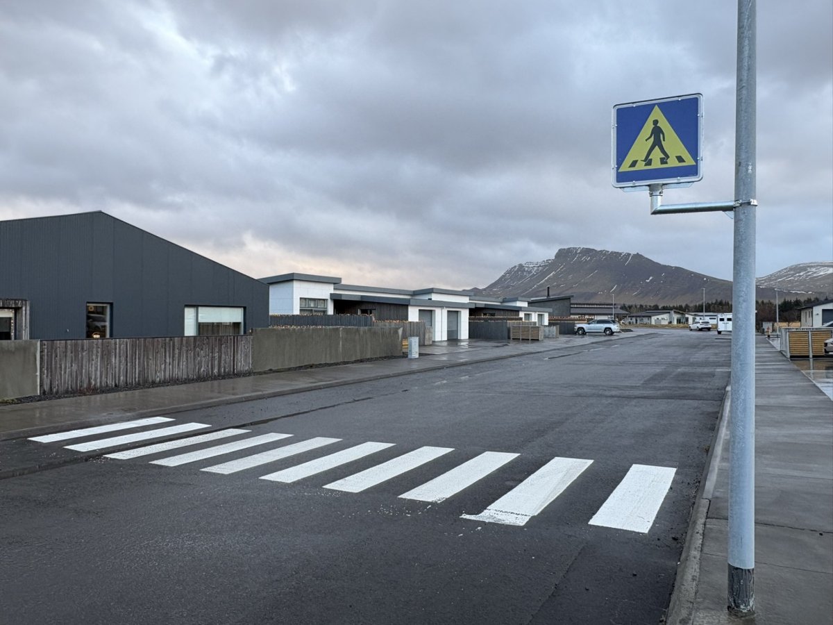 Vinnu við málun lauk nú um miðja viku en enn á eftir að klára að setja upp nokkur gangbrautarmerki.