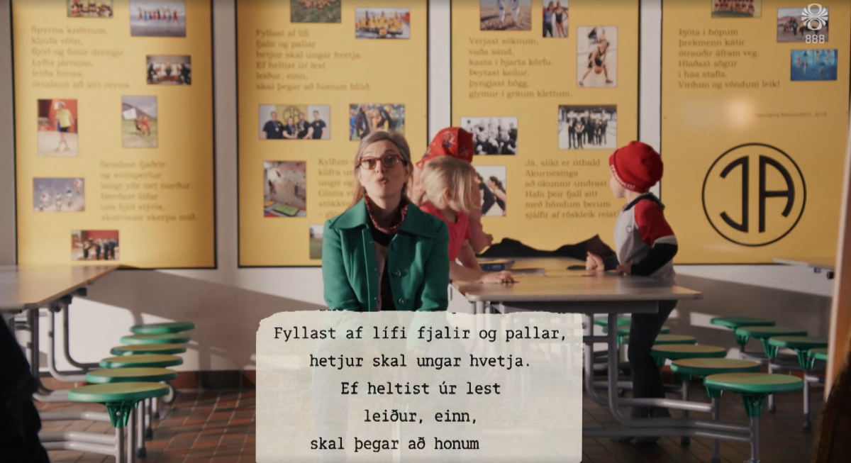 Áhugasamir geta séð þáttinn Ljóðaland hér, en hægt er að fara á mínútu 5:08 til að finna Sigurbjörgu og nemendurna í Brekkubæjarskóla.