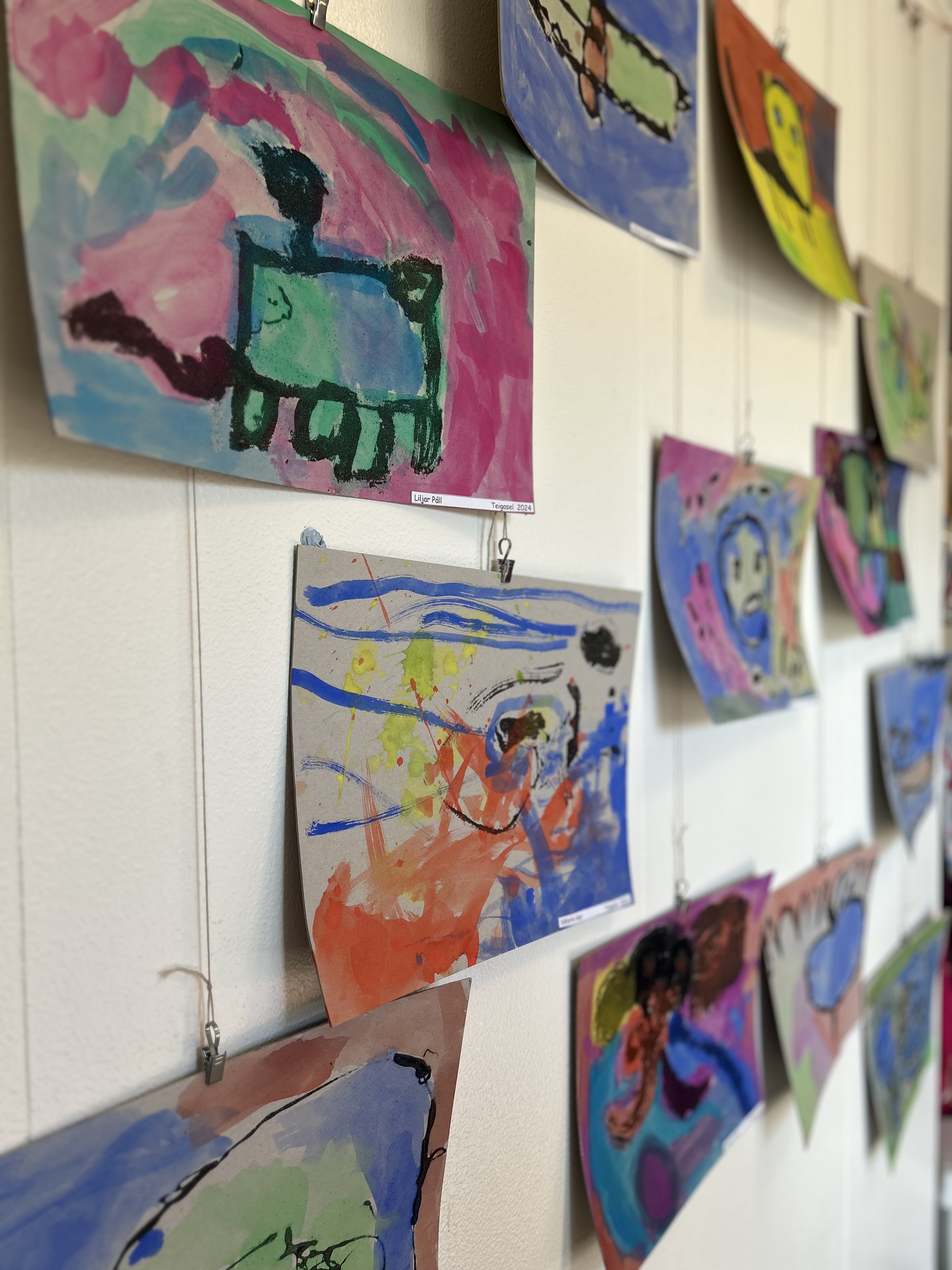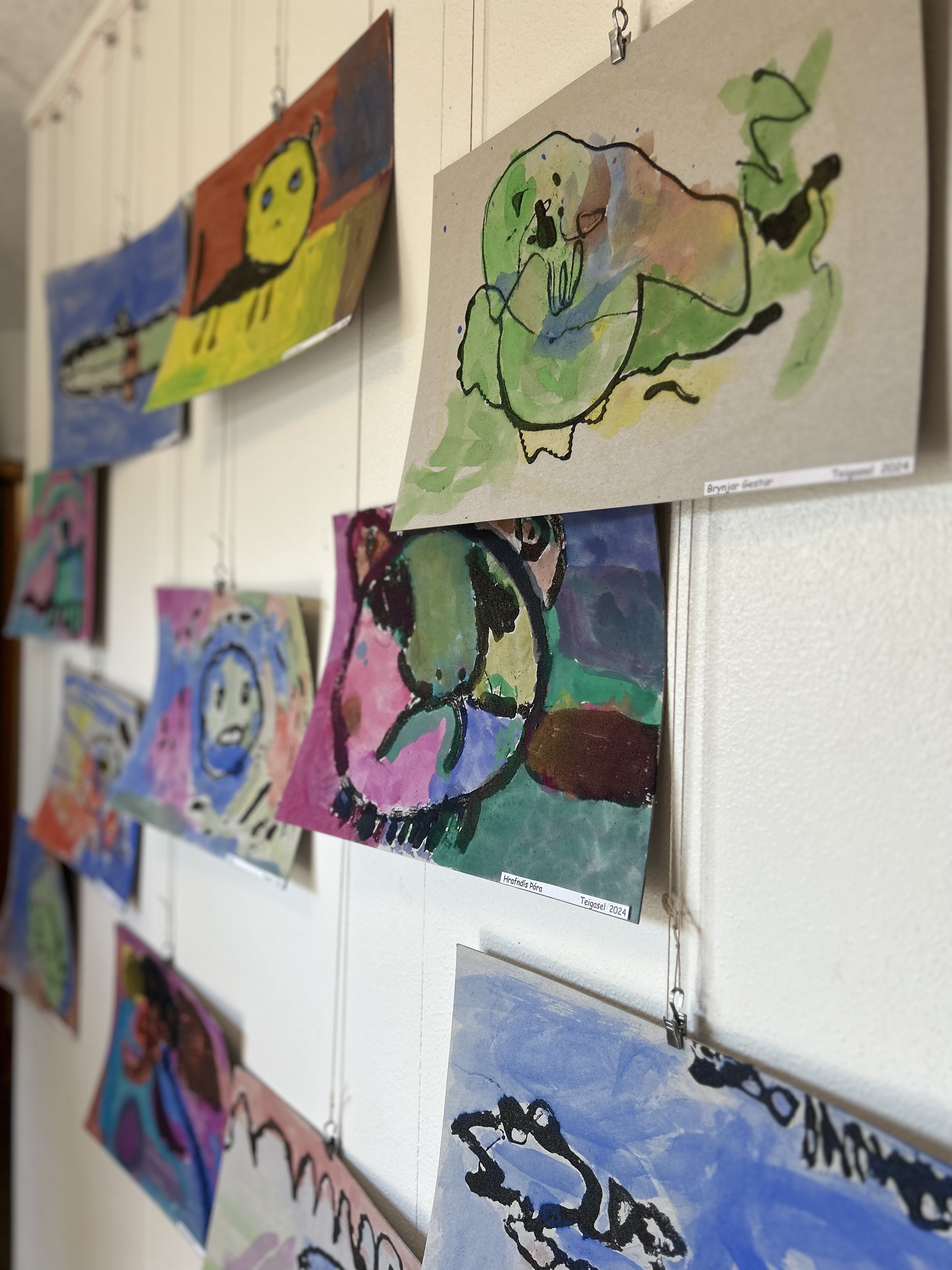 Börnin á Teigasel hafa einnig teiknað og málað sín eigin skrímsli sem má sjá hér fyrir neðan: