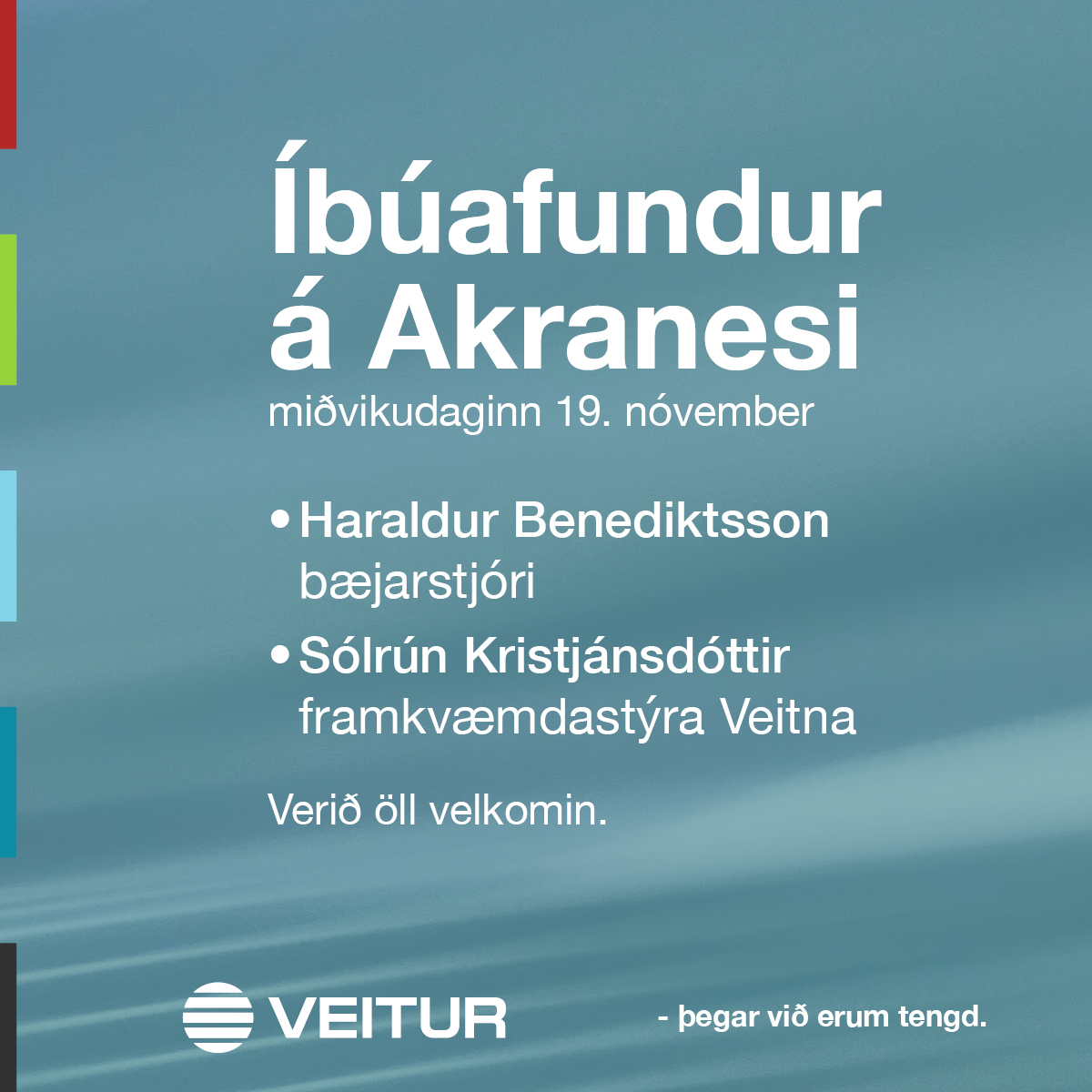 Veitur boða til íbúafundar á Akranesi til að eiga samtal við bæjarbúa um þjónustu fyrirtækisins í sveitarfélaginu. Fundurinn verður haldinn í Golfskálanum miðvikudaginn 19. nóvember kl. 19.30-21.30.