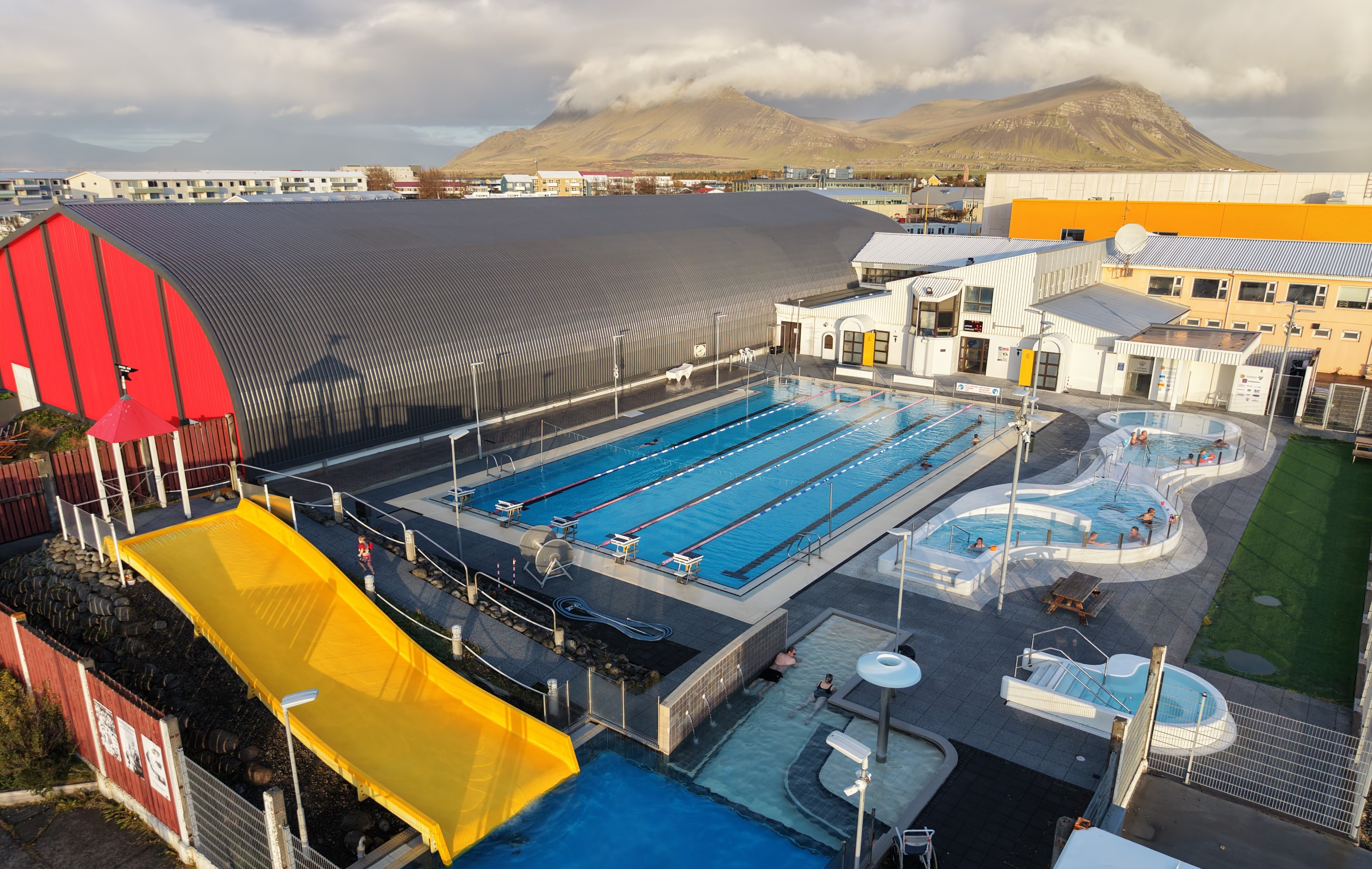 Skemmtileg sundlaug fyrir fjölskylduna, sundkappann og til sólbaðs. Sundlaugin er opin alla virka daga frá kl. 6:30-22 og um helgar frá kl. 9-19.